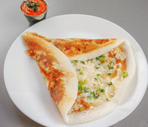Crispy rava dosa cooked with onions, tomatoes & spices then stuffed with cottage cheese and based on nut products.