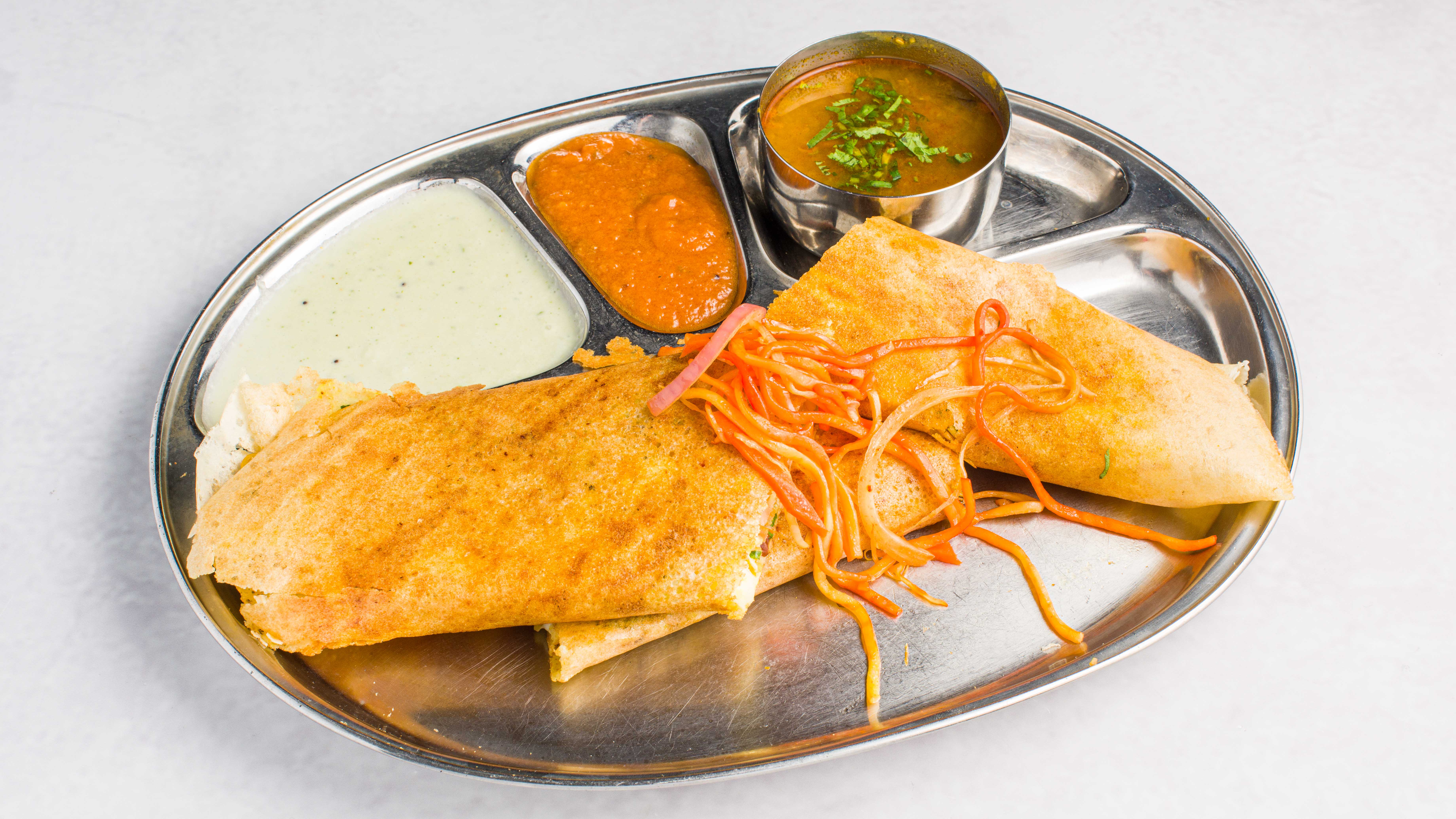 Dosa layered with cooked potatoes, onions, ginger & Indian spices. Its dairy and nut free.