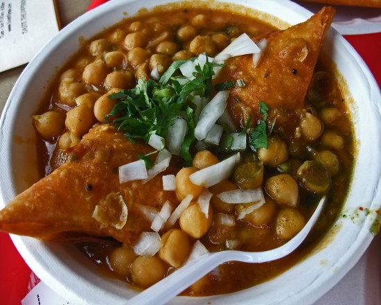 Potato patties stuffed with raisins, yellow lentil & green peas. Served with Channa Masala, sweet & spicy sauce.